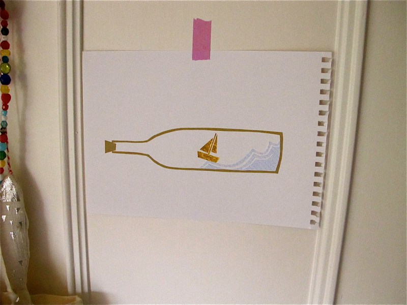 a bottle and a golden boat
